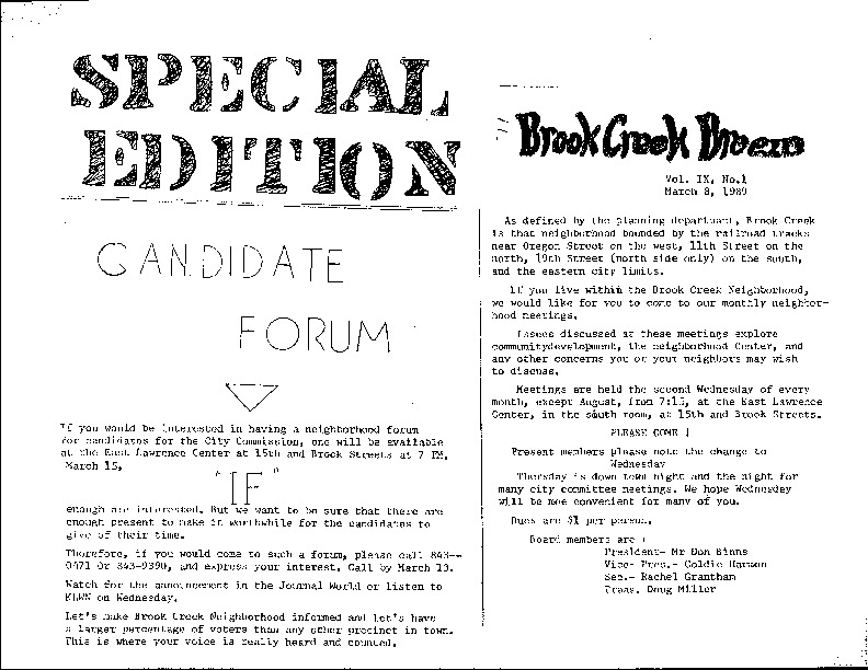 Brook Creek Neighborhood Association (Lawrence, Kan.), “Brook Creek Breeze, March 1989-October 1990,” Digital Douglas County History, accessed December 5, 2025, https://lplks.omeka.net/items/show/1392.