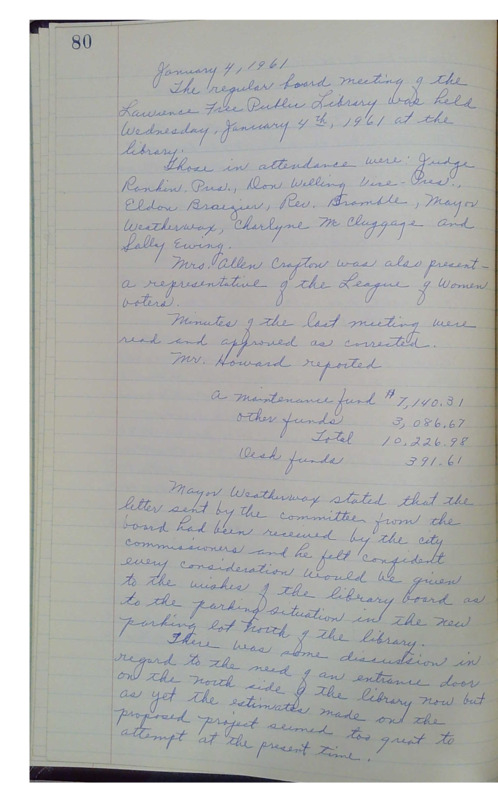 Lawrence Free Public Library (Lawrence, Kan.), “Library Board Minutes of the Lawrence Free Public Library for the Year 1961,” Digital Douglas County History, accessed December 5, 2025, https://lplks.omeka.net/items/show/1645.