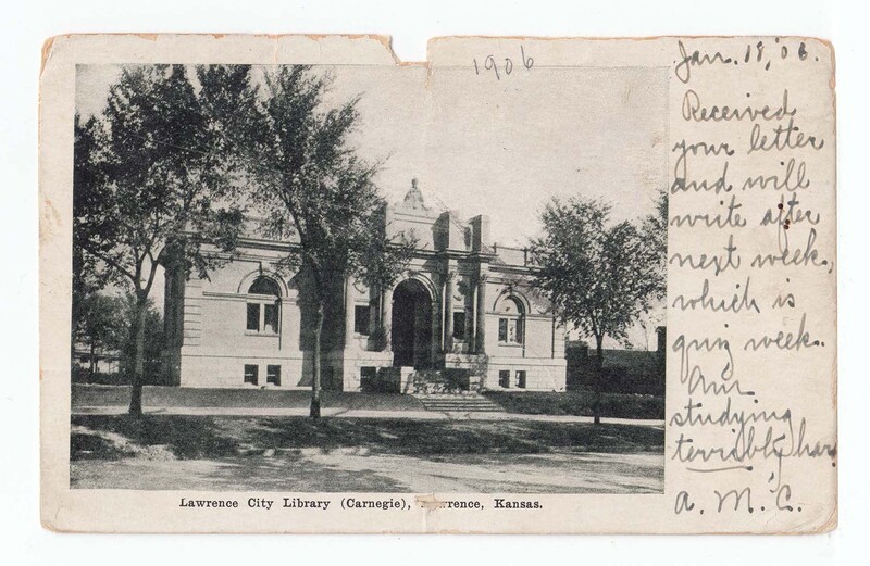 A.M.C., “Postcard of the Lawrence Public Library,” Digital Douglas County History, accessed December 5, 2025, https://lplks.omeka.net/items/show/205.