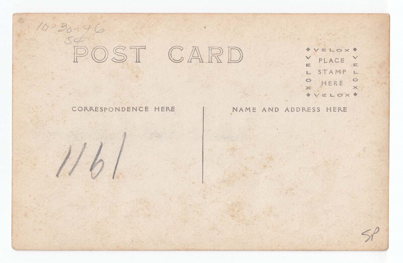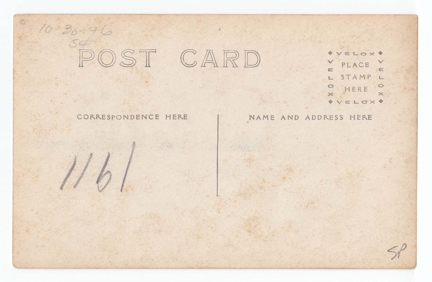 Postcard with a black and white photograph of a building after the 1911 toronado. Acquisition information on the back.