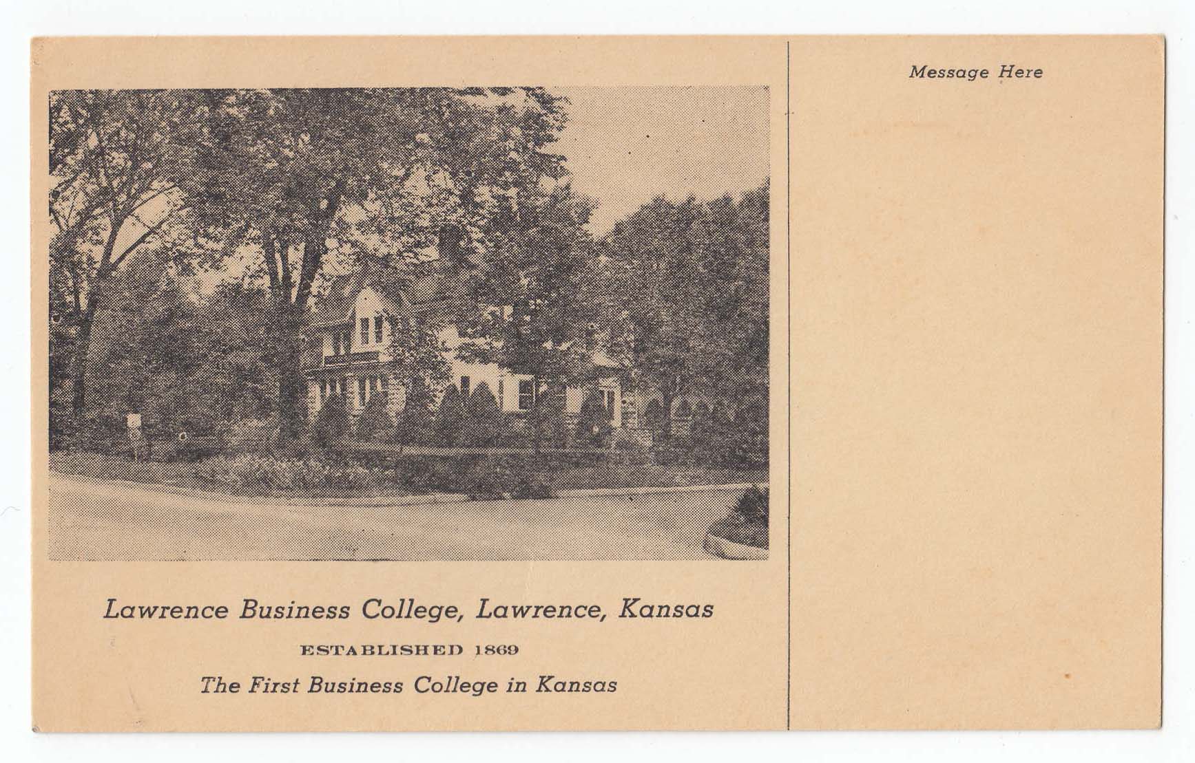 “Postcard of Lawrence Business College,” Digital Douglas County History, accessed December 5, 2025, https://lplks.omeka.net/items/show/725.