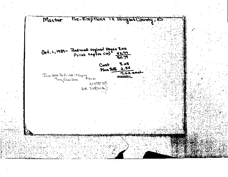 "Descriptions of Lands and Names of Locators in Douglas County, Kansas, taken from the Tract Books of the U.S. Land Office at Topeka, Kansas." The list of pre-emptions is followed by an index; this list excludes the city of Lawrence.