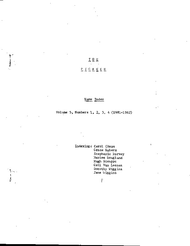 Name Index to The Pioneer, Vol. 5, Nos. 1-4